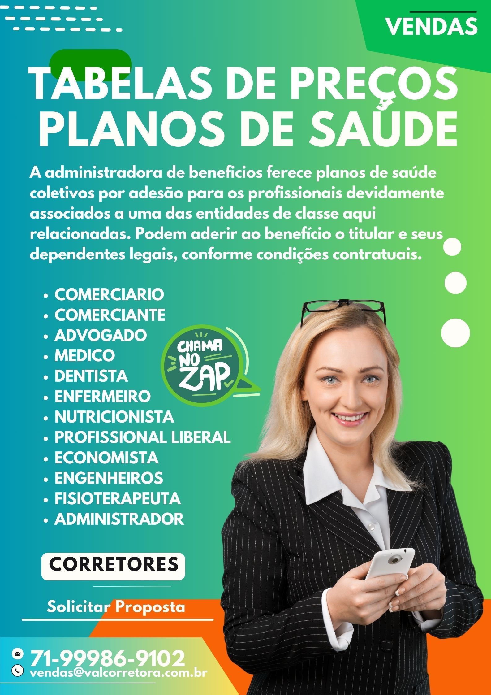 Na nossa corretora, oferecemos as melhores opções de planos de saúde è importante saber que as operadoras tem regras de comercialização. Alguns planos não estão disponíveis para determinada cidade, idade, profissão. Verifique sua elegibilidade. Fale conosco e solicite uma proposta personalizada de acordo com o perfil do Beneficiário.
